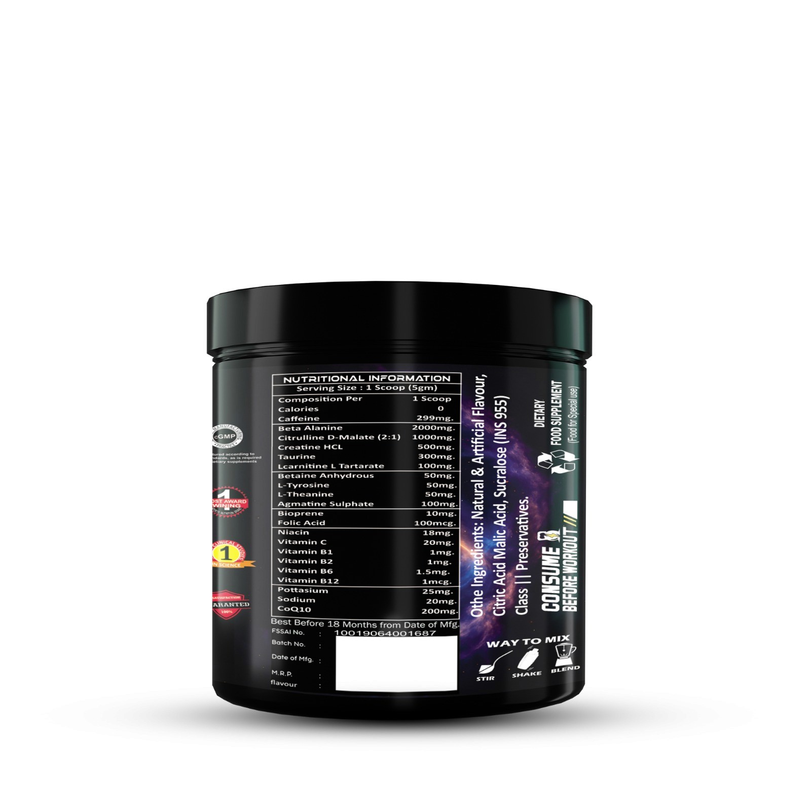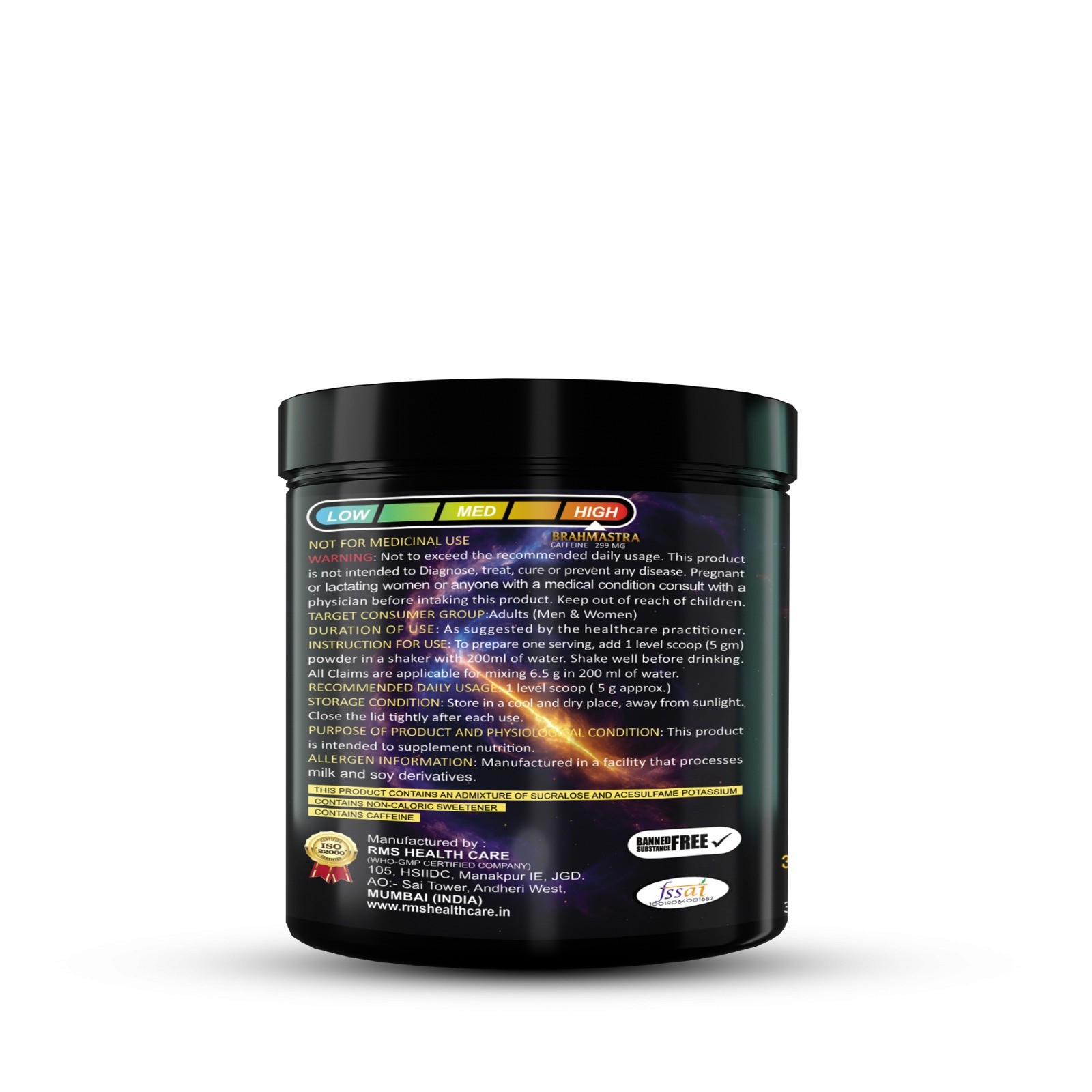Unleash Your Inner Warrior. Every Rep. Every Set. Brahmastra isn't just a pre-workout — it's your weapon of choice before you enter the battlefield of iron. Scientifically formulated by FitFusion, this powerful blend is designed to ignite energy, enhance focus, and supercharge your performance — so you dominate every workout with unshakable intensity. 🔥 Why Choose Brahmastra? Explosive Energy: With 299mg of caffeine per scoop, experience razor-sharp alertness and a surge of clean, sustainable energy. Endurance Amplified: 2000mg Beta-Alanine and 2000mg Citrulline D-Malate (2:1) help buffer lactic acid and boost blood flow for longer, harder training sessions. Muscle Power Formula: A potent blend of Creatine HCL, Taurine, and Betaine Anhydrous supports strength, hydration, and muscle pumps. Mental Clarity & Focus: Enriched with L-Theanine, L-Tyrosine, and Acetyl L-Tartrate for a tunnel-vision mindset during your lifts. Vitamin Support: Infused with essential vitamins (C, B-complex, Folic Acid, Niacin) and minerals (Potassium, Sodium) to maintain peak performance and recovery. 🧪 Nutritional Highlights (Per Scoop - 5g) Calories: 0 Caffeine: 299mg Beta-Alanine: 2000mg Citrulline D-Malate (2:1): 2000mg Creatine HCL: 500mg Taurine: 500mg L-Carnitine L-Tartrate: 100mg Betaine Anhydrous: 500mg L-Tyrosine: 50mg L-Theanine: 50mg Agmatine Sulphate: 100mg Bioperine®: 10mg Plus: Folic Acid, Vitamin C, B Vitamins, Sodium, and Potassium 🚫 No BS. Just Pure Performance. No Added Sugar No Preservatives No Artificial Colors Only Clean, Natural Flavours ✅ How to Use: Mix 1 scoop (5g) with 200ml water 15–30 minutes before your workout. Stir, shake, or blend — your call. 📦 Your Fitness. Our Mission. Backed by the FitFusion guarantee of quality, purity, and results — Brahmastra is manufactured in GMP-certified facilities and third-party lab-tested for your confidence